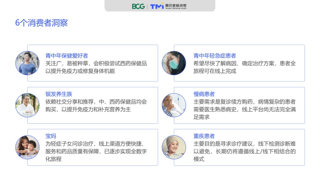 腾讯广告TMI腾讯营销洞察携手波士顿咨询公司(BCG),通过定量调研、深度访谈、案例研究,基于腾讯平台的消费者数字化医疗全旅程研究,以及近一年数字化医疗头部平台大数据分析,洞见数字化医疗行业未来发展大势,全方位解读当前消费者数字化医疗行为,为整个行业发展提供有效建议与指引。