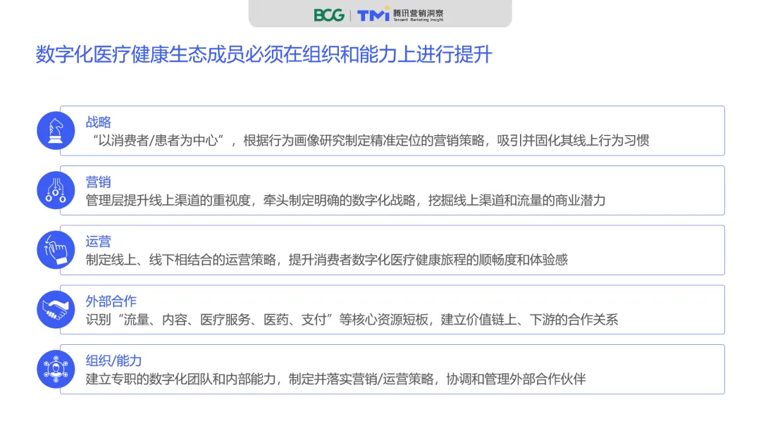 对于数字化医疗生态中的参与企业而言,以“消费者为中心”制定数字化渠道战略、关注用户需求、夯实产品与服务水平,并注重组织和能力的培养,将有助于企业把握机会,从行业的加速和爆发中获益。
