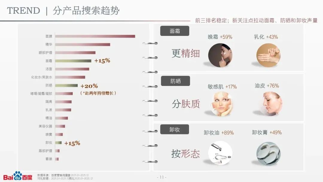 了解用户在百度上行为的变化后,接下来分别从功效和产品两方面来了解行业的整体搜索趋势。