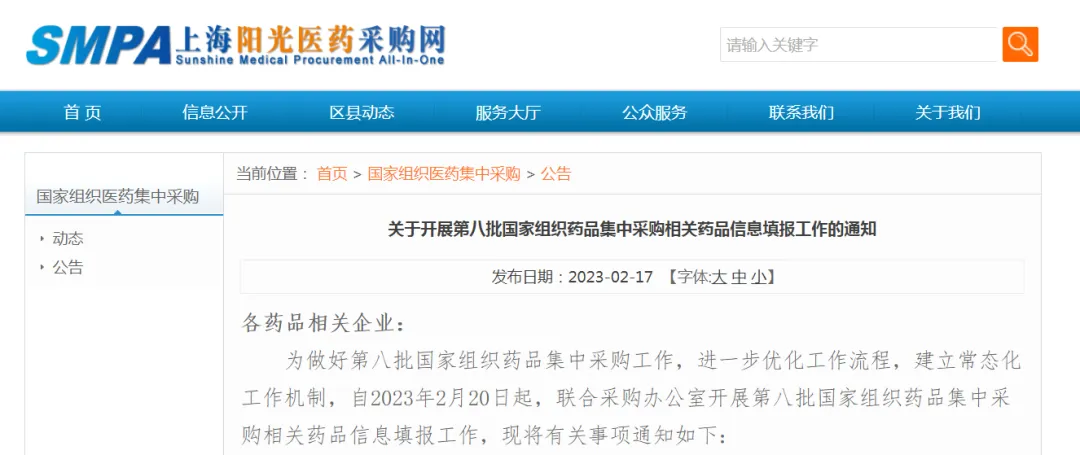 图1 关于开展第八批国家组织药品集中采购相关药品信息填报工作的通知