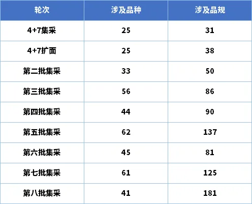 对比起过往的几次集采,涉及的品种数有所下降,但是涉及的品规有所增长。