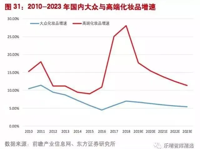 以彩妆、高端护肤品为首的细分品类仍然处于快速发展期,目标客群的增加以及消费高端化共同推动这些品类市场相对更快的增长。