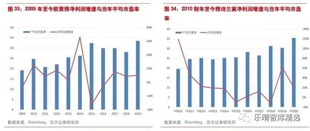 参考海外市场经验,我们可以看到化妆品龙头公司估值在最近10年呈现逐步上移的走势,资本市场通常愿意给予其更高的估值溢价,即使在业绩平稳增长阶段,因为庞大稳定的行业属性、品牌稳固的市场地位和良好的盈利能力与财务质量(稳定较高的ROE与企业自由现金流)等原因,海外化妆品龙头公司普遍获得了较高的估值水平(30-40倍PE)。