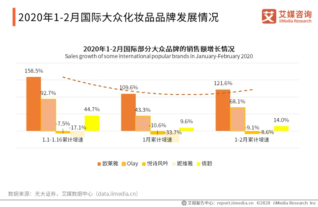2020年1-2月国际大众化妆品品牌发展情况