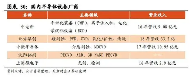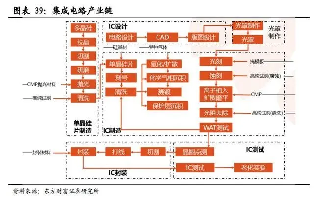 按照产业链环节划分,具体可以分为设备、材料、IC设计、晶圆代工、封装测试五个领域,每个领域都有一定的门槛,下面我分别介绍每个领域的发展情况。