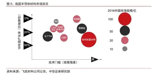 除硅片外,芯片制造过程中还需要用到电子气体、靶材、工艺化学品、光刻胶、光刻胶除胶剂、CMP、掩模板等材料。