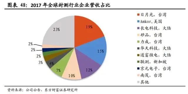 国内封测领域有三大龙头,分别是长电科技、华天科技和通富微电,三家均进入了全球封测行业的前十,2017年时三家总共占了全球封测市场份额的19%。得益于2015年收购了国际封测巨头星科金朋,长电科技无论技术还是规模均牢牢占据国内第一位。可惜蛇吞象并购后并没有给长电科技带来现金回报,星科金朋2015-2018年累计亏损了20.73亿,也是非常难受。