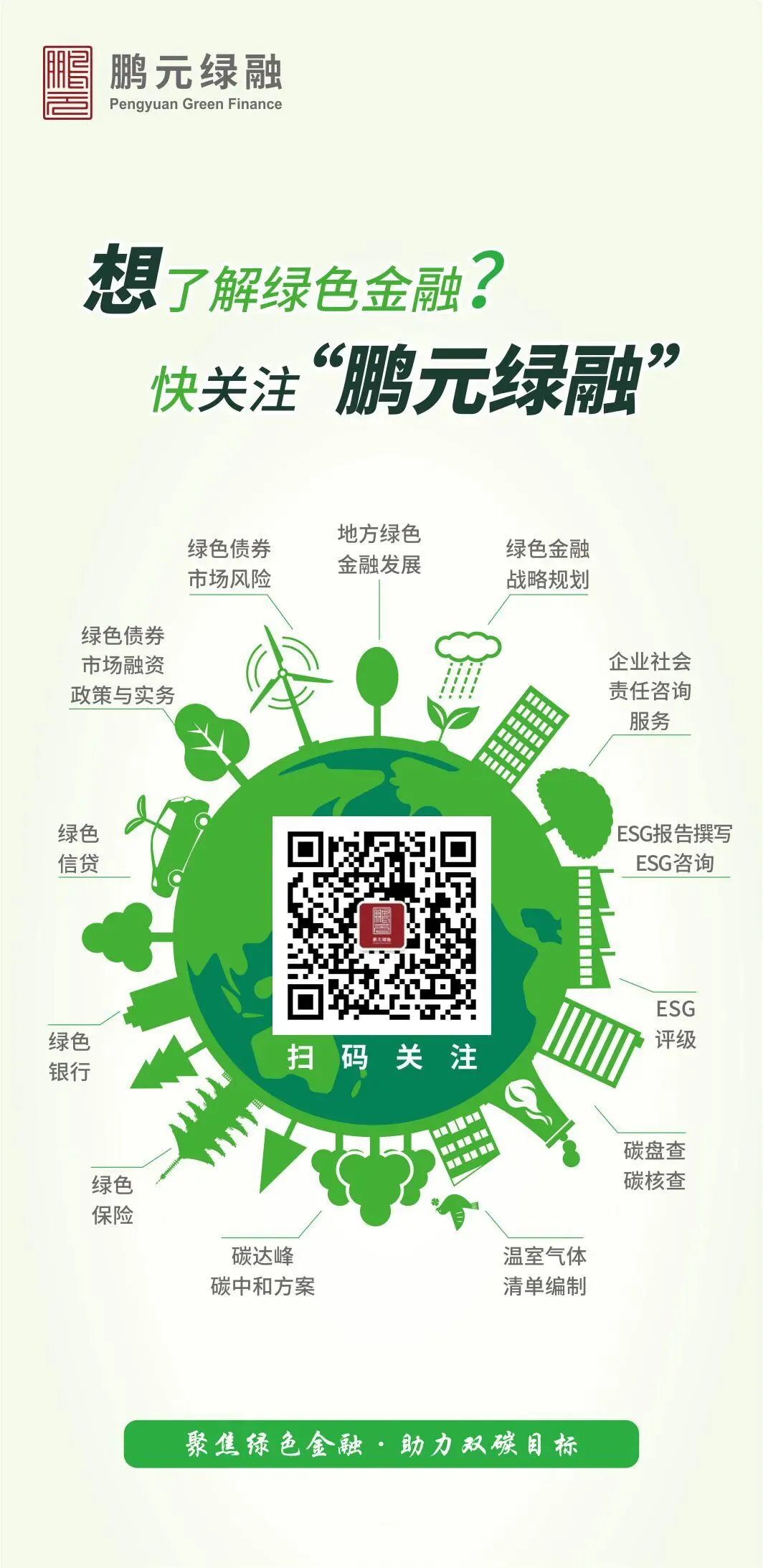 中证鹏元资信评估有限公司全资子公司鹏元绿融成立于2004年,是中国金融学会绿色金融专业委员会理事单位、中国银行间市场交易商协会会员、国际资本市场协会(ICMA)“绿色债券原则”(GBP)观察员机构。鹏元绿融专注与ESG及绿色金融领域,截至目前已协助包括上市公司及国有企业在内的十余家企业完成ESG报告披露。