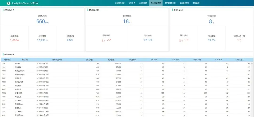 通过对新品的分析,了解新品上市受欢迎程度,判断是否满足预期,提前识别畅销品与滞销品,预判销量,以达到批量采购、生产、运输,降低成本,提高效率。