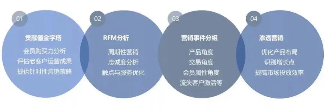 实现周期性营销、忠诚度分析、触点与服务优化。