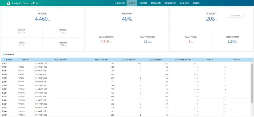 通过对会员购买力分析,评估老客户运营成果,提供针对性营销策略。