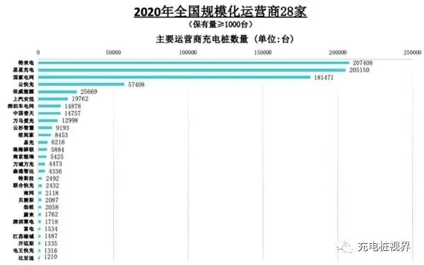 份额上民营企业特来电、星星充电和国资龙头国网公司居前三。截至2020年全国充电运营企业所运营充电桩数量超过1万台的共有9家,分别为:特来电运营20.7万台、星星充电运营20.5万台、国家电网运营18.1万台、云快充运营5.7万台、依威能源运营2.6万台、上汽安悦运营2万台、深圳车电网运营1.5万台、中国普天运营1.5万台、万马爱充运营1.3万台。这9家运营商占总量的91.6%,其余的运营商占总量的8.4%。拉开后面的企业一大截,行业集中度高。