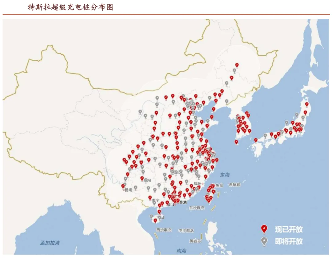 特斯拉是车企自建自营充电桩的代表。2020年11月6日,特斯拉官方发布微博表示,到今年底,将在我国建成近650个超级充电站,超级充电桩和交流充电桩总量达7000余个,覆盖全国各主要城市及城市间连接线,京津冀、长三角、珠三角分布密度较高。