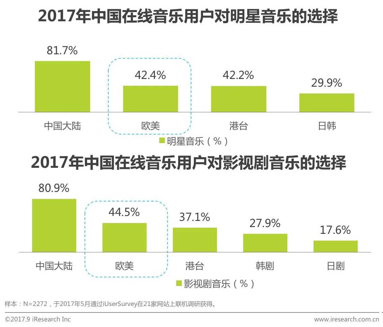 用户最关心明星和影视剧音乐,选择外语音乐时更倾向欧美