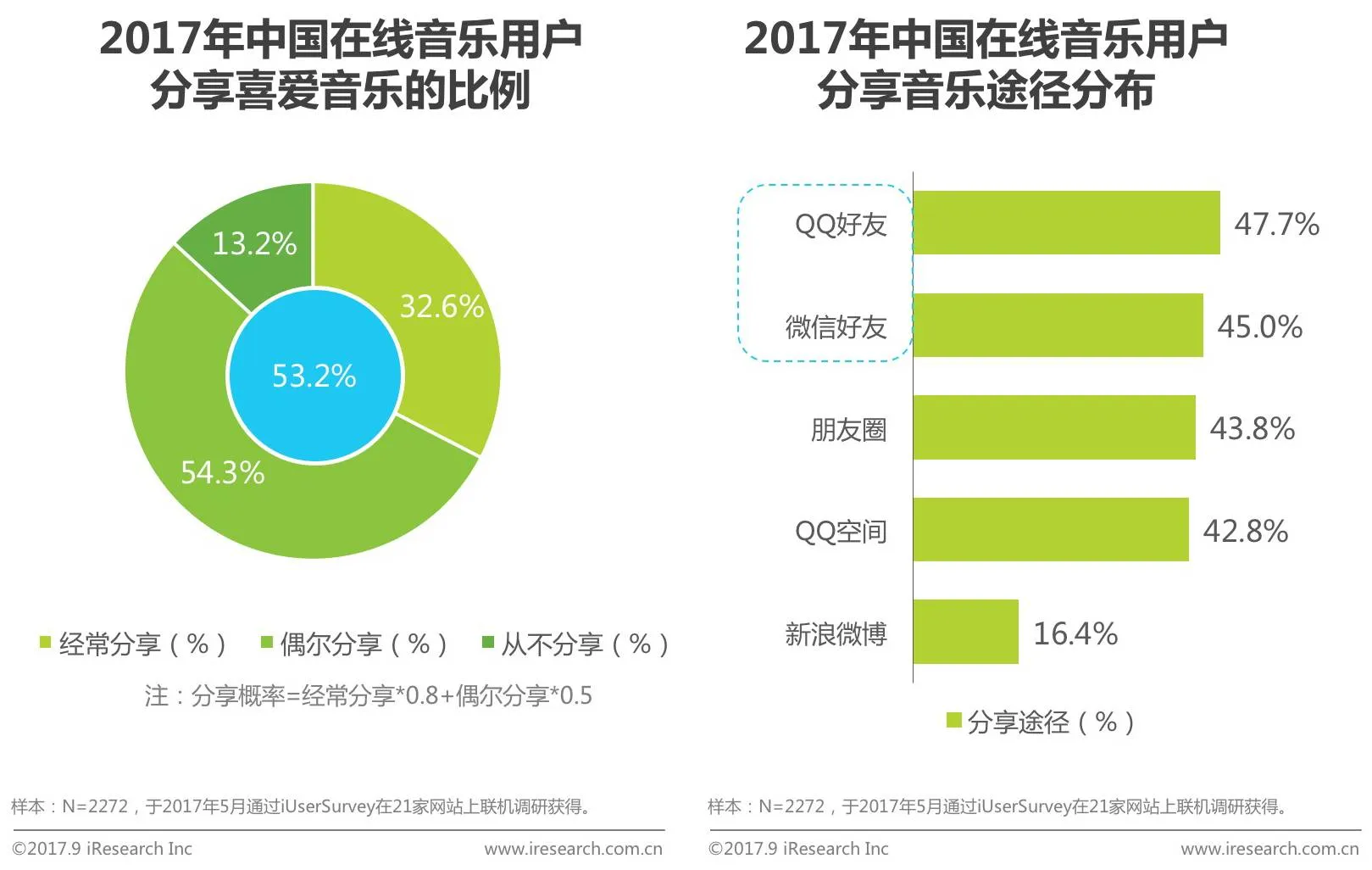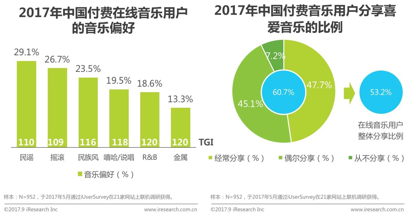 普通在线音乐用户分享率为53.2%,付费用户高达60.7%