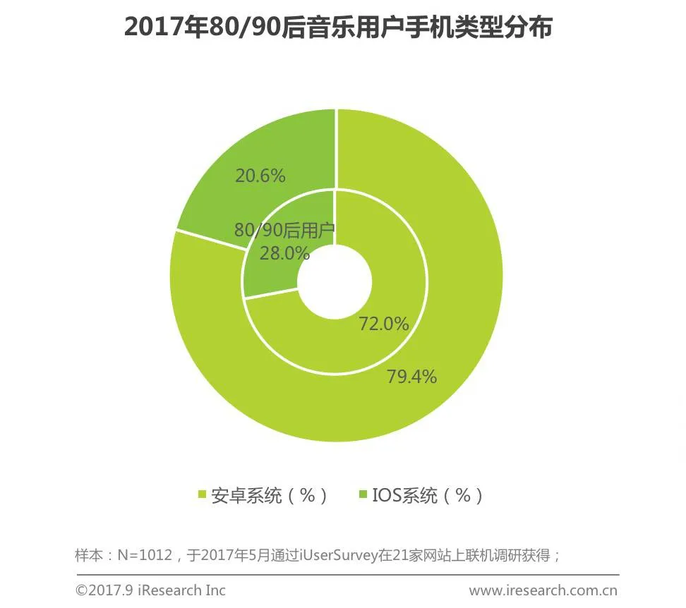 苹果手机的持有占比高于在线音乐用户,且更换更频繁