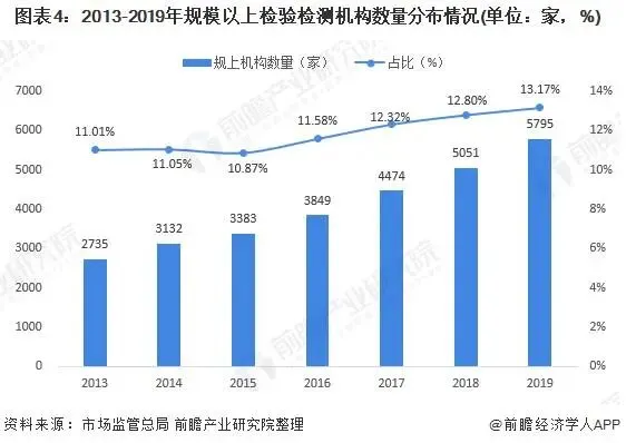 2015-2019年,我国检测行业持续增长,检验检测机构数量及检验检测市场规模保持同步增长。2019年从事各类检验检测的机构数量达到44007家,相比2015年的31122家实现大幅增长。本文将选取检验检测行业部分重要数据进行解析,仅供参考!