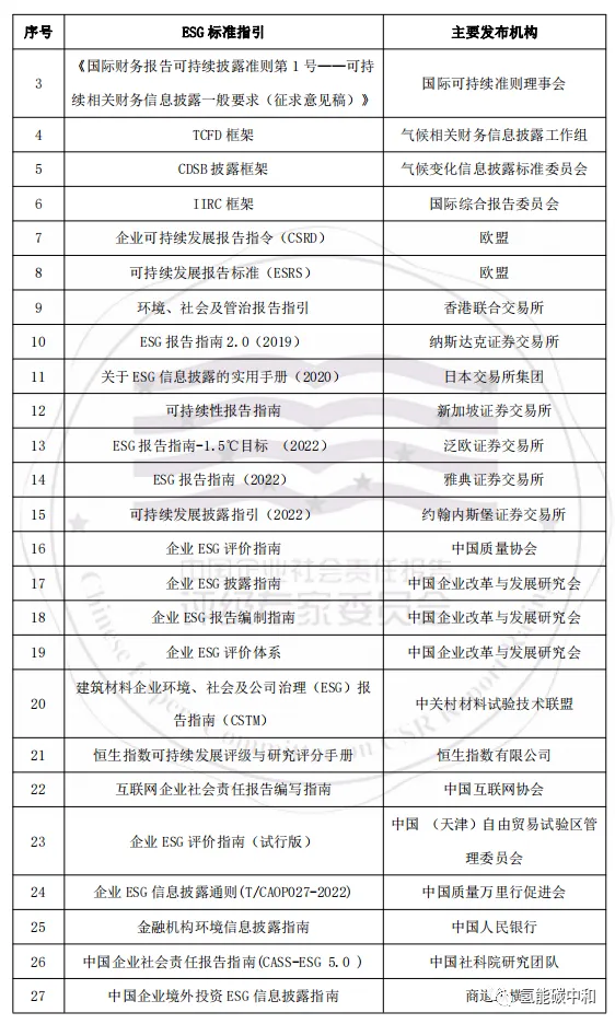 《中国企业社会责任报告指南(CASS-ESG 5.0)》及分行业指南,香港联合交易所《环境、社会及管治报告指引》,全球报告倡议组织可持续发展报告标准(GRI 标准)、可持续发展会计准则(SASB)等国内外 ESG 相关标准。