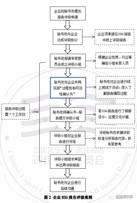 评级专家委员会采取开放、灵活的工作模式,根据申请报告评级企业的经营特性,确定 2 名委员组成评级专家小组,其中 1 名任组长。秘书处搜集、整理企业参评资料,提交评级专家小组,组内专家分别对 ESG报告进行评定、出具评级意见,评级小组组长确定评级结果,提交委员会副主席审核。