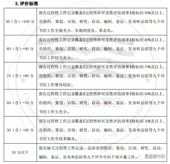 (3)评级秘书处组织开展报告编制过程的规范性评估。对于首次参与报告评级的企业,由秘书处通过线下或线上访谈方式与报告编写负责人沟通,完成“过程性和可及性评估资料确认书”,双方签字确认。对于已连续参与报告评级两年及以上的企业,考虑到报告编制管理的延续性,秘书处发送“过程性和可及性评估资料确认书”供企业自填,企业将确认书及证明材料交由评级小组审核,双方签字确认;
