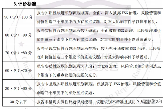 考查企业是否对 ESG 重点议题进行识别、界定与分析,有无对重大事件的详细说明。在各分行业指南正式发布前,评级专家委员会将构建分行业信息采集表,以此为参照评价参评报告的实质性。