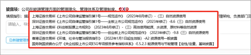 图:HiESG模板工具中“能源”议题披露项示例