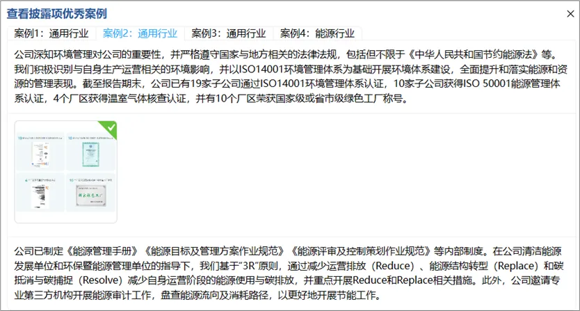 图:“能源”议题下单个披露项优秀案例示例