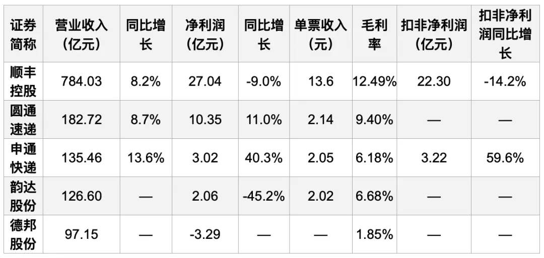 ●申通快递净利润增速领跑行业,扣非净利润同比大增59.6%,单票收入环比提升0.08元至2.05元,盈利能力显著修复。