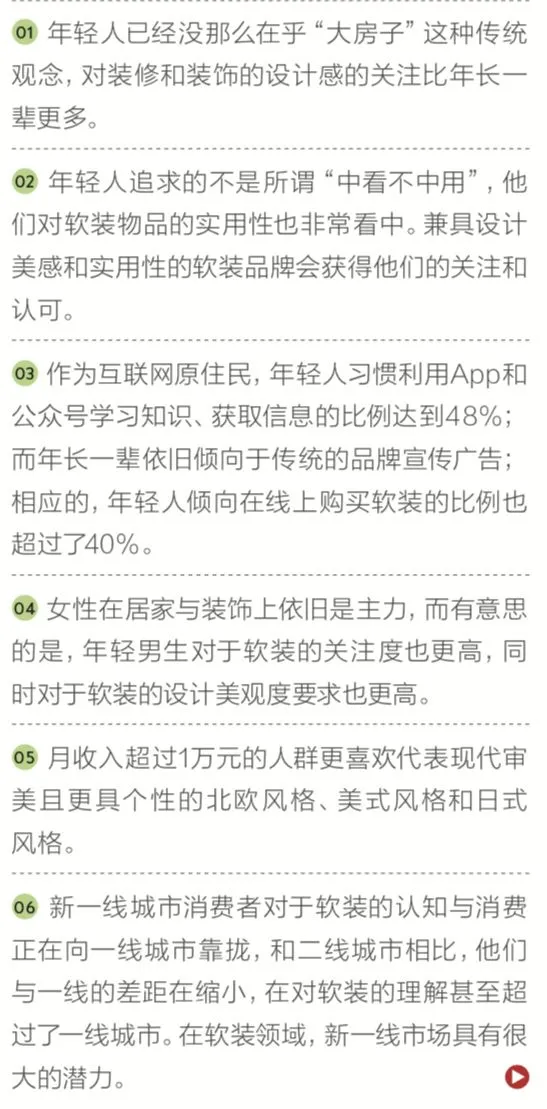 通过采访、比较和分析收入在1万元以上和年龄在23岁以下的人群,在不久的将来,软装将呈现以下的趋势: