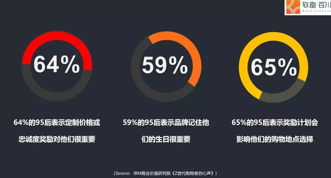 7 64%的95后表示,自主定制价格或制定品牌忠诚度奖励对他们来说很有吸引力。59%表示品牌记住其生日很重要,“个体化营销”趋势明显,95期望预设和规划自己专属的购物体验。