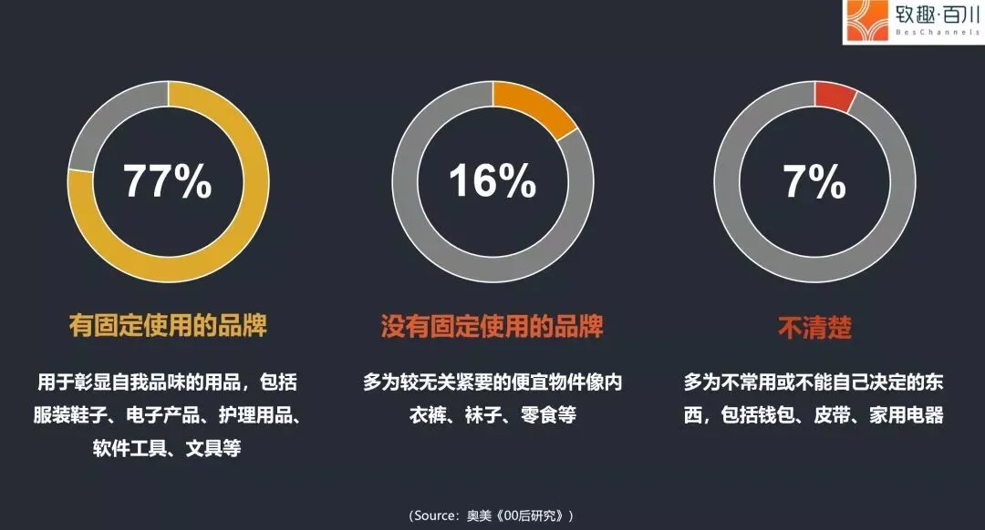 1277%的95后自己有固定使用的品牌,不会轻易改变。喜欢能够彰显品味、表达态度、单价较高的品类。