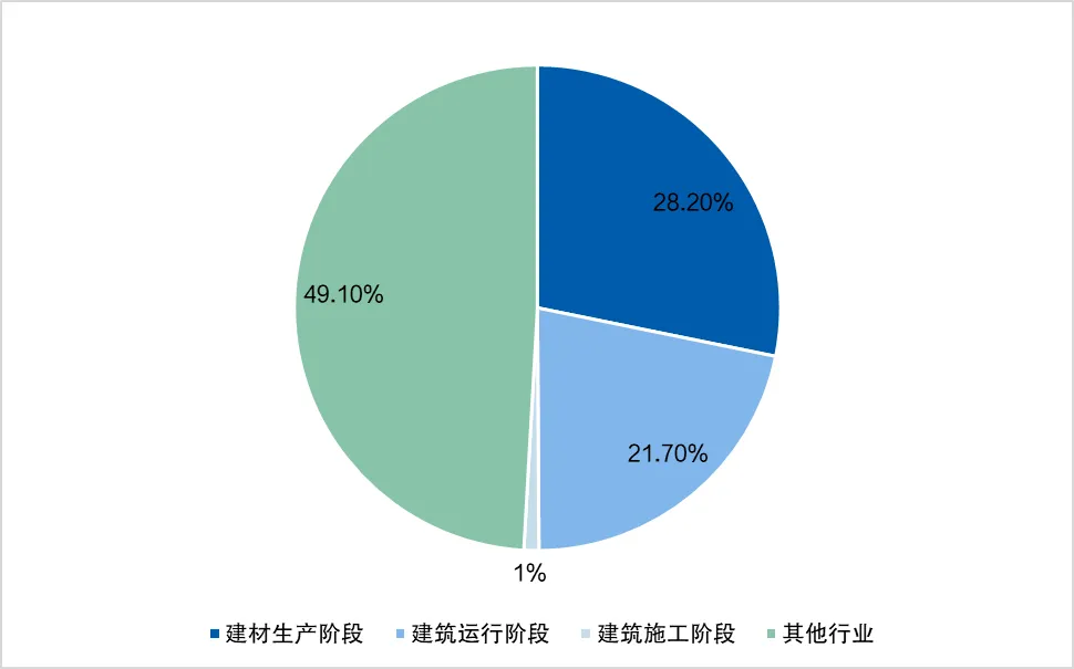 图2:中国建筑全过程碳排放总量及占比情况(单位:%)