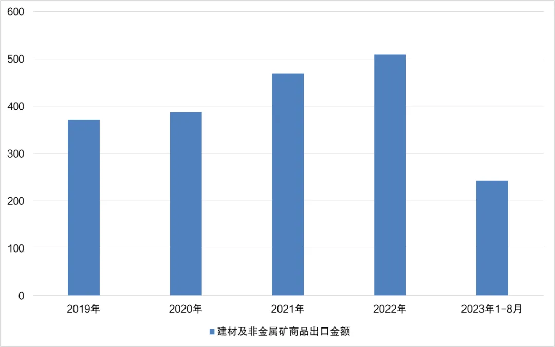 图3:2019年-2023年8月中国建材及非金属矿商品出口金额