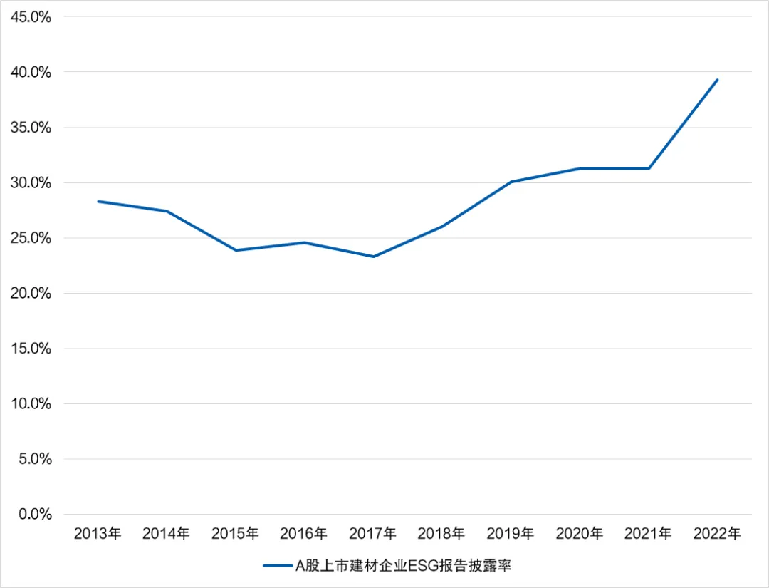 图4:2013年-2022年A股上市建材企业ESG报告披露率(单位:%)