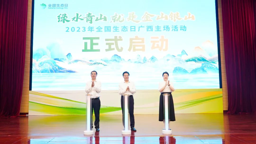 开幕式上,苗庆旺与唐轶昂、陈亮共同启动2023年全国生态日广西主场活动。活动现场还组织参观绿水青山就是金山银山——广西生态文明建设示范保护成果展,播放2023年全国生态日广西宣传短视频,发布广西生态文明建设成效,开展环保设施向公众开放活动和生态环境宣传活动,并为2023年广西最美生态环境志愿者以及从事生态环境工作20年、30年纪念章获得者代表颁奖。