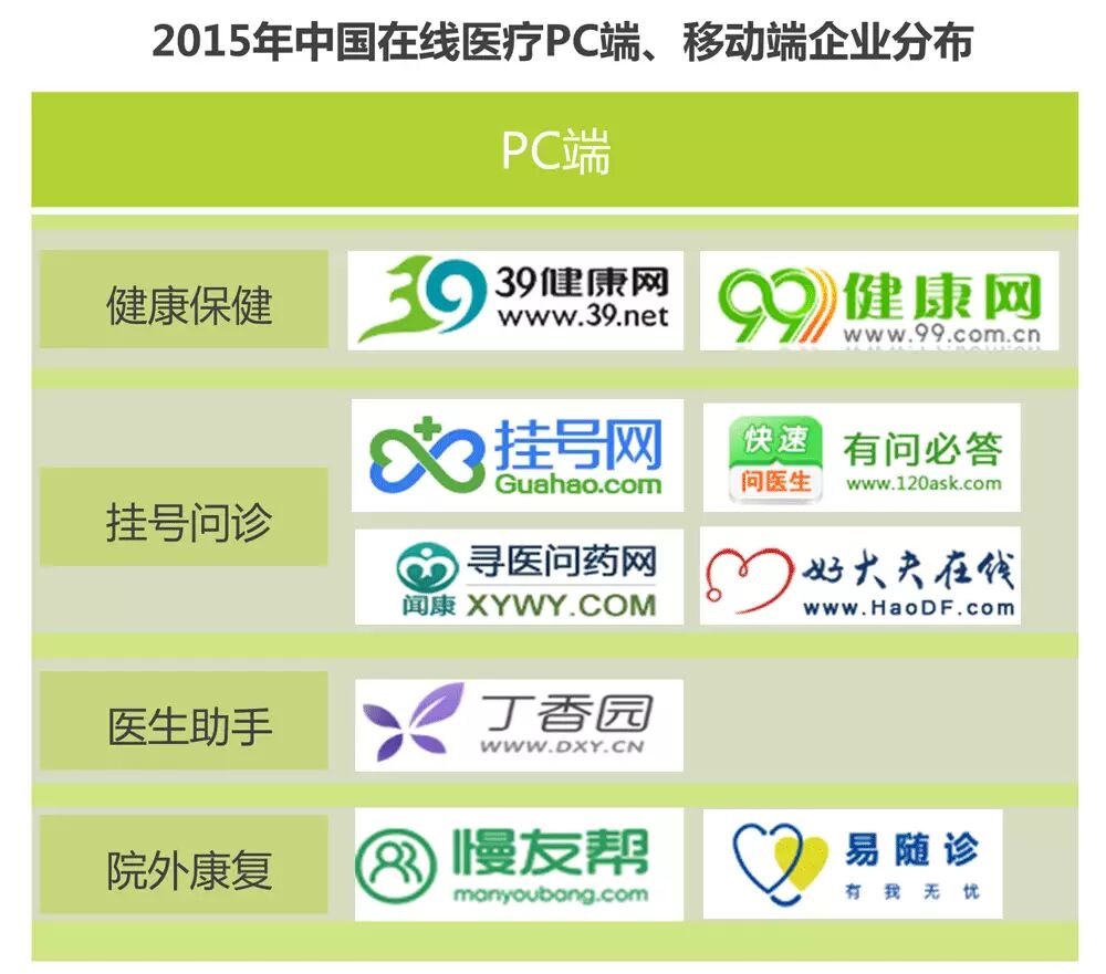 ▌在线医疗PC端、移动端企业分布