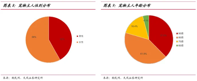 行业发展驱动因素从需求端看,养宠人群呈现年轻化,“80后”和“90后”成为主力人群,年轻群体的消费意识强;人口老龄化趋势加剧生活方式和家庭结构的改变,对宠物催生出情感需求,支付意愿提升。供给端看,宠物医院通过标准化服务和专业分工可提高议价能力,未来有望实现诊疗量和服务价格的双提升。