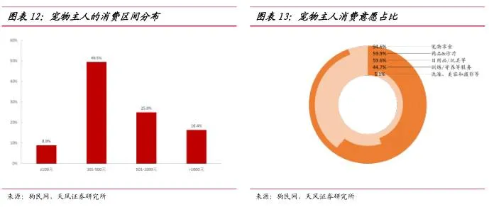 99.8%的宠物主人愿意在宠物身上进行投资和消费。其中约50%的人群每月花费金额101-500元,59.9%的宠物主人有购买药品/保健品、宠物诊疗行为。