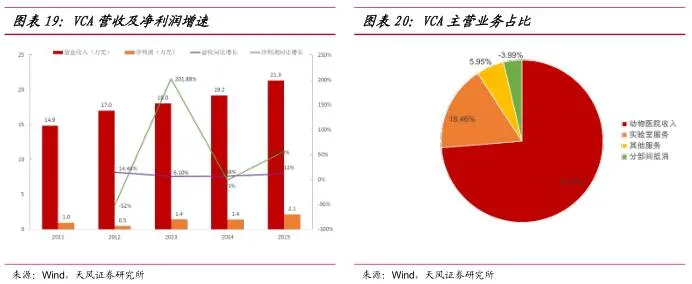 VCA Antech成立于1986年,2001年纳斯达克上市,公司总部位于美国的洛杉矶,为宠物提供专业的诊疗服务,在宠物的内科、肿瘤科、眼科、皮肤科和心脏病等项目上具有特色优势。除此之外公司还向受益市场销售宠物专用影像诊断设备和体外诊断设备以及其他相关产品。除了宠物医院,在拥有美国动物临床实验室组成的网络,对宠物提供专门的治疗方法。
