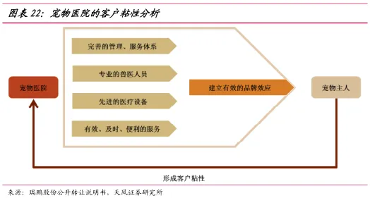 客户会对宠物连锁医院品牌形成依赖,进而成为宠物医院稳定的客户流量。我国宠物医疗长期以来缺乏统一的定价标准,连锁宠物医院的服务标准化,对宠物医生的培训和管理更加规范,更容易建立品牌优势,提升客单价。宠物医院也可以通过开展不同的业务形成差异化收费,如通过1对1 VIP服务对宠物进行全方位的检查和诊疗,并提供宠物托管等照料服务,高质量的服务水平可以提高客单价和盈利能力。
