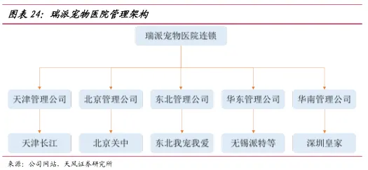 瑞派宠物成立于2012年,专门从事宠物医院连锁经营和管理,总部位于天津。目前拥有华东、北京、东北、东南和天津武大管理公司,目前瑞派宠物管理宠物医院门店数量达83家,年营业收入超过1.8亿元。瑞派宠物员工约1000人,执业兽医近300人,年接诊量达70万例,动物医学特色学科25个。