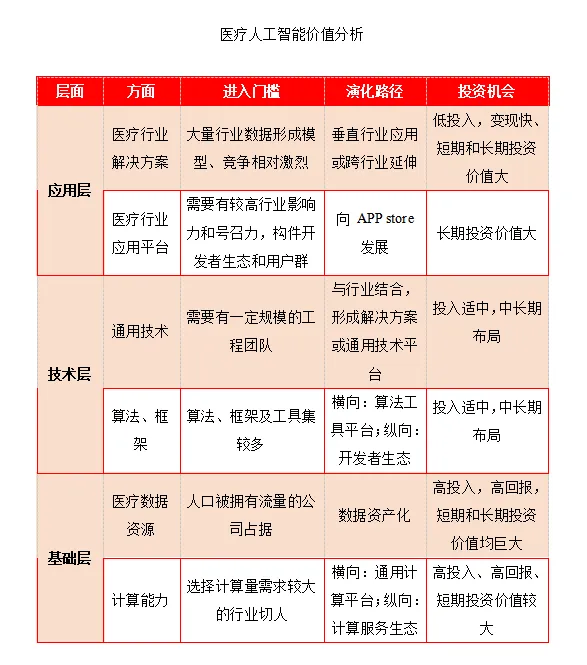 平台的成立有利于人工智能在医疗领域的落地。AI的赋能将给医疗行业带来全新的发展动力。人工智能是一个“云端大脑”,而5G则是一条“信息高速公路”。依靠“高速公路”带来的信息和数据,人工智能才能不断学习和演化,完成机器智能化进程。5G可分别从数据、时效和算力为人工智能技术提供更好的支撑基础,大幅促进其各类终端使用场景的落地和应用。5G将激发诸如智能网联汽车、远程医疗手术等各类创新应用,补齐制约人工智能发展的短板,极大拓展AI应用场景,5G与人工智能共同引发智能终端产业下一轮技术和创新变革。5G应用将极大提升数据传输速度,提升诊断报告生成速度与准确率。中国人工智能产业规模远高于全球17%的增速水平,5G技术商用将推动整个机器智能化进程。5G将激发诸如智能网联汽车、远程医疗手术等各类创新应用,补齐制约人工智能发展的短板,极大拓展AI应用场景,5G与人工智能将共同引发智能终端产业下一轮技术和创新变革。2018年中国新一代信息技术产业规模突破23万亿元,同比增长12%,部分新兴技术领域中国已经进入全球第一梯队。中国人工智能产业规模预计达到339亿元,同比增长56%,远高于全球17%的增速水平。随着产业配套不断成熟,逐步走向商用的5G网络,将为人工智能这一“云端大脑”搭建一条“信息高速公路”,为庞大数据量和信息量的传递提供了高速传输通道,推动整个机器智能化进程。中国部分新兴技术领域已经进入全球第一梯队,从人工智能产业看,中国人工智能领域融资金额居全球之首,达到325亿美元,在全球占比达到58%。据前瞻产业研究院发布的《中国人工智能行业市场前瞻与投资战略规划分析报告》统计数据显示,2015中国人工智能市场规模已突破100亿元,到了2016年中国人工智能市场规模达到141.9亿元,同比增长26.3%。截止到2017年中国人工智能市场规模增长至216.9亿元,同比增长52.8%。初步测算2018年中国人工智能市场规模将达339亿元左右,比2017年增长56.3%,远高于全球17%的增速水平。预测在2019、2020年中国人工智能市场规模将达500亿元、710亿元。2015-2020年复合年均增长率为44.5%。随着人工智能技术的发展,语音交互、计算机视觉和认知计算、深度学习等技术也逐渐成熟,人工智能医疗领域的各项运用变成了可能。如语音录入病历、医疗影像智能识别、辅助诊疗/癌症诊断、医疗机器人、个人健康大数据的智能分析,AI医药研发等。随着人工智能医疗市场的不断发展,热度不断提升,据统计,2017年行业市场规模已达到136.5亿元,2018年市场规模在210亿元左右,同比增长54%。随着我国医疗需求不断提升的同时,医疗资源分配不均,医护人员短缺,而人工智能刚好弥补了这一短缺,加之人工智能医疗的政策规划不断落地,更加速我国人工智能医疗的发展。据IDC统计数据,到2025年人工智能应用市场总值将达到1270亿美元,其中医疗行业将占市场规模的五分之一。人工智能加医疗两大性感行业也获得了资本的高度关注。2018年前三季度,行业融资额达到26.2亿元,同比增长128.42%,行业正处于风口上。根据前瞻产业研究院发布的《中国医疗人工智能行业市场前景预测与投资战略规划分析报告》数据统计,2013-2018年我国人工智能医疗行业融资额整体走高,截止至2018年前三季度,国内共有39家企业披露完成融资,其中18家企业披露融资金额,合计约26.2亿元; 相比2017年同期,在完成融资的企业数量上,同比增长21.88%,在披露的融资总规模上,同比增长128.42%。从融资额度和融资数量的角度来看,均可以看出明显增长趋势。其中,千万级别和亿级的融资事件更是占到65%左右。从2018年前三季度的融资情况来看,我国人工智能医疗行业融资依旧处于早期阶段。种子轮和天使轮阶段的企业占比31%,早期融资阶段企业(A轮及以前)数量占比更是达到77%,比重较高;而处于B轮及以后融资阶段企业仅为9家,占比约23%。AI+医疗发展的核心在于“算法+有效数据”。基础层的计算能力是构建生态的基础,技术层的算法、框架以及通用技术是构建技术护城河的基础,都属于人工智能产业大生态的基础设施,具有高投入、高收益的特点,需要中长期进行投资。而应用层是人工智能技术在具体行业、具体应用场景价值变现的渠道,具有变现能力强的特点。随着医疗数据互联互通程度的提升和共享机制的建立,AI+医疗行业发展将加速。产业链中市场参与主体,无论掌握底层资源优势、用户规模优势、或技术优势的科技巨头,还是在应用层面、细分领域深耕的创业企业,将根据自身资源禀赋、产业链位置、战略目标等主客观因素而制定自身竞争战略,最终目的是在产业链中实现自身价值。目前,底层基本都已由科技巨头布局,且未来开放人工智能平台是其构建生态的必然趋势。应用层汇聚了大量的AI+医疗创业公司,分布在多个细分领域。总体而言,全球AI+医疗产业结构呈现倒金字塔形态。