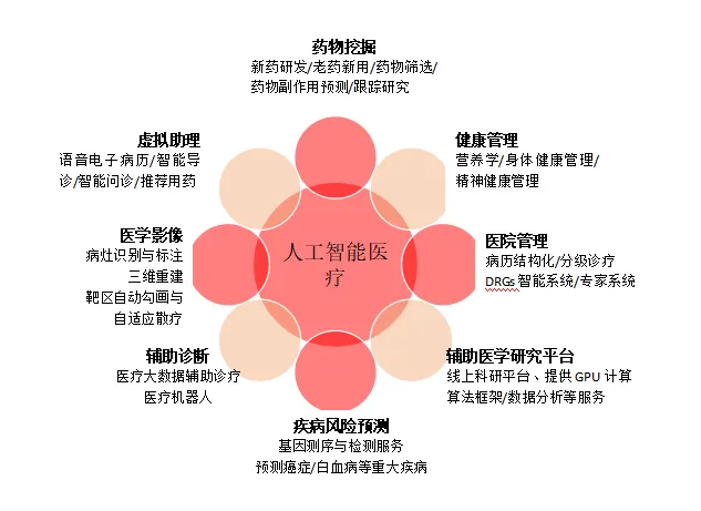 AI在疾病预测上还包括精神病发病风险预测、慢性肾病分级预测、脑疝预测等。目前国内共有45家公司提供“疾病风险预测”服务。其中包括:华大基因、瑞昂生物、安诺优达、图玛深维、博奥生物、泛生子基因、生命奇点、赛福基因、图玛深维、贝瑞和康等。医学影像,是目前人工智能在医疗领域最热门的应用场景之一。目前国内共有40余家公司提供“医学影像”服务。“医学影像”应用场景下,主要运用计算机视觉技术解决病灶识别与标注、靶区自动勾画与自适应放疗、影像三维重建三种需求。在病灶识别与标注细分领域,有不少企业参与竞争,如阿里云、腾讯、京东、翼展科技、推想科技等,行业竞争较为激烈。医学影像核心产品的病灶识别准确率高、用时短。靶区自动勾画和自适应放疗软件通过算法帮助放疗科医生对200-450张CT片进行自动勾画,30分钟即可完成一套CT片子的勾画,远低于医生手动勾画平均耗时(4小时)。研发企业包括:汇医慧影、全域医疗、连心医疗、依图科技等。博裕金融通过行业前景、基层眼科医疗情况分析、企业走访等,认为医学影像未来市场空间很大,其中至真互联是最具发展潜力的。至真互联网技术有限公司是一家致力于将人工智能与医疗服务相结合的企业。亮点在于:1、高质量的影像数据:数量上来看,至真目前拥有最大成人眼底眼底病病灶影像数据库规模1300万张,数据时间跨度从2008年~2019年的十年数据,分布于158家同仁以及医联体的临床数据库。质量上看,于2016年起协同中国最优秀的一批眼科副主任医生标注出的一套AI算法影像数据库(截止至今,标注数据库已经达到110万张,标注数据质量度国内最高),标注医生团队来自同仁医院。其中糖尿病视网膜影像标注已经获得中检院标准的认定,是目前国内标注质量和规模最大的数据库;标注数据仍然在进行增长,目前已经完成多病种青光眼、黄斑病变、高度近视等重要眼底病的影像标注储备,此外至真非常重视全人群眼底影像数据投入和建设,截止2019年6月底,成功构建了新生儿眼底影像数据库,这套数据库目前是中国最大的新生儿眼底影像数据库,为未来开展新生儿智能筛查提供了有利的储备;合法合规性上看,至真是合规合法与同仁医院签约,针对眼底影像数据AI开发合作的公司。这为后续 CFDA认证、器械评审以及国家合规性要求提供了有利支撑。2、软件+硬件构建完整商业闭环。目前很多互联网医疗企业面临无法变现的困境。至真自主研发合作生产国内首款智能设备手持式眼底照相机,自动对焦、自动曝光、自动追踪;95%以上筛查算法直接赋能诊断推理;从眼底采集到AI分析报告产出只需要5分钟。目前设备已经在社区医院、体检医院、基层医院等医疗机构落地,用于基层眼底疾病的筛查诊断。目前已经与复兴、美年健康、普瑞眼科合作,盈利模式初步打通。3、2018年获得百度投资,2019年获得金浦投资。金浦曾投资控股过多家眼科医院,至真可以与眼科医院联动,提高眼底疾病筛查诊断效率,为医院导流。医院管理,主要指针对医院内部、医院之间各项工作的管理,主要包括病历结构化、分级诊疗、DRGs(诊断相关分类)智能系统、医院决策支持的专家系统等。在分级诊疗的政策推动之下,国内陆续出现促进分级诊疗的企业服务,行业前景广阔。分级诊疗的实现,离不开医联体与智能云服务,二者相辅相成。目前国内共有21家公司提供“医院管理”服务,业务大多集中于病历结构化服务。提供病历结构化服务企业:大数医达、中科汇能、科大讯飞、Airdoc、心医国际、森亿智能等。提供分级诊疗服务企业:锐达医疗、翼展科技、心医国际、思派等。提供DRG&专家系统的企业:医渡云、雕龙数据等。除医学影像以外,“AI+辅助诊疗”的产品还有两大类:医疗大数据辅助诊疗、医疗机器人(主要指针对诊断与治疗环节的机器人)。医疗机器人主要包括手术机器人、肠胃检查与诊断机器人、康复机器人等。我国在医疗机器人的研究与政策支持方面,都具有良好的发展环境。目前国内致力于手术机器人的公司主要采用两种业务模式:第一种,面向医院进行机器人产品的单独销售,并提供长期维修服务;第二种,是为医院提供手术中心整体工程解决方案。国外,IBM和Google均已布局辅助诊疗,并构建完整系统。IBM Watson for Oncology 是基于认知计算(读懂大数据背后的含义)的医疗大数据辅助诊疗解决方案,为全球首家将认知计算运用于医疗临床工作中。Google研发的DeepMind Health系统将机器学习和系统神经科学结合,通过强大的通用学习算法模拟构建人脑神经网络,以便更好的解决医疗保健问题;DeepMind系统于2016年在英国的一家医院使用。目前国内有8家公司提供医疗大数据辅助诊疗服务:恵每医疗、新屿科技、思派、若水医生、百洋智能科技等;11家公司提供“医疗机器人”服务:天智航、妙手机器人、新松机器人、六维康复、祈飞科技等。医疗领域中的虚拟助理,基于特定领域的知识系统,通过智能语音技术和自然语言处理技术,实现人机交互,将患者的病症描述与标准的医学指南作对比,为用户提供医疗咨询、自诊、导诊等服务。根统计,目前国内共有15家公司提供“虚拟助理”服务,主要解决语音电子病历、智能导诊、智能问诊、推荐用药等需求,并且有衍生出更多需求的可能性。企业包括:语音电子病历-科大