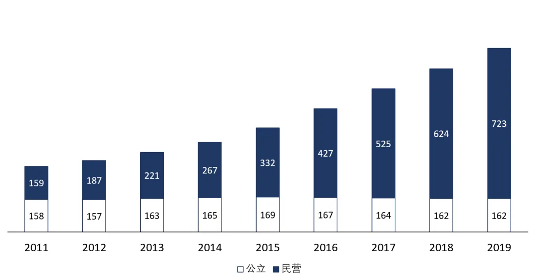 图:2011~2019年全国民营口腔专科医院快速增长