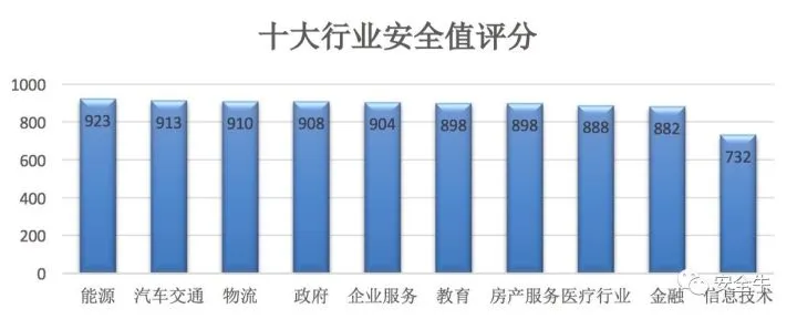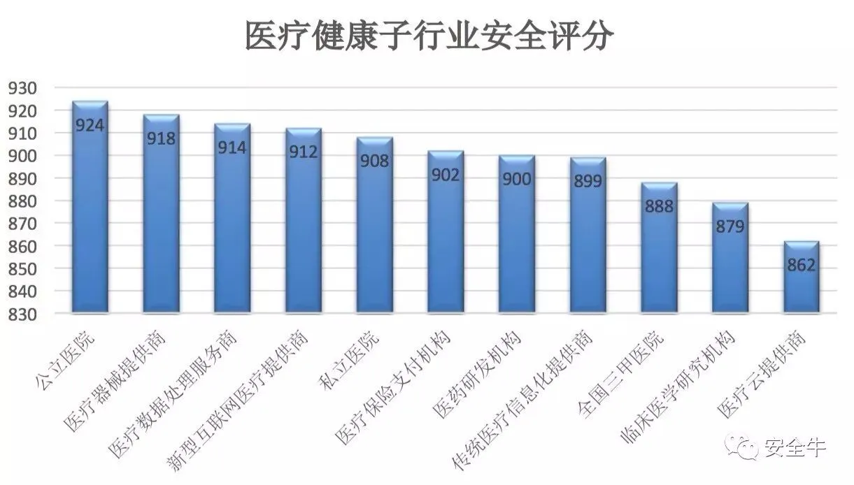 √ 医疗健康行业安全评分在十大行业中排名第七