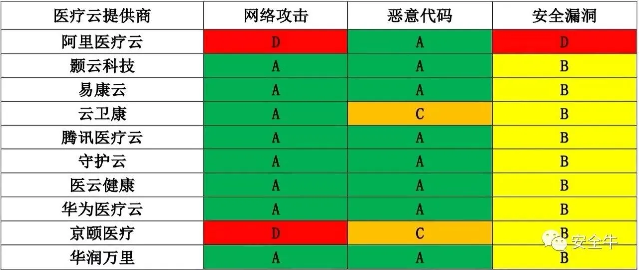 医疗云提供商在医疗健康子行业各安全评分中最低