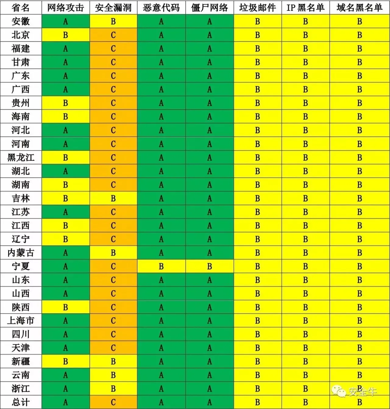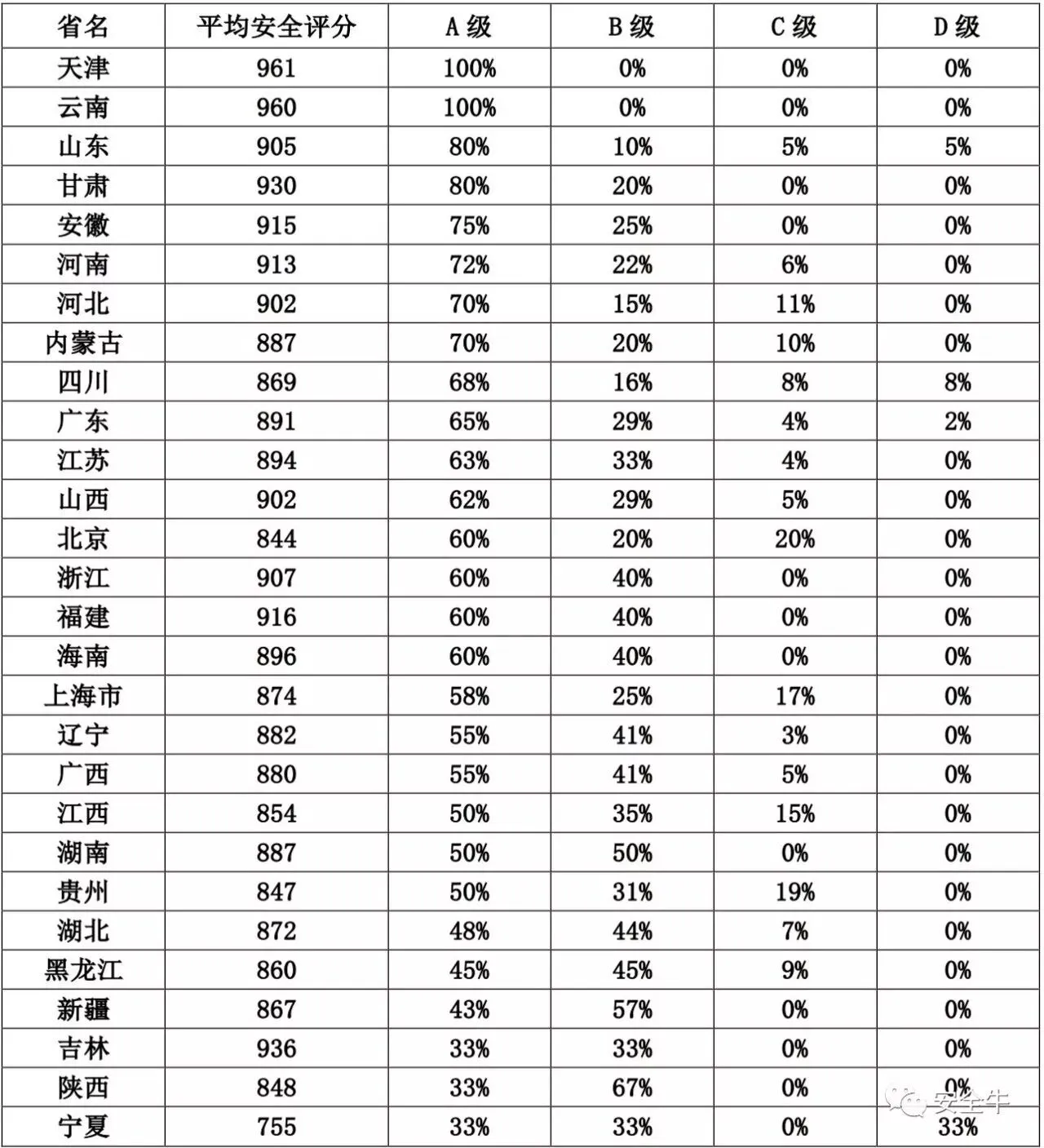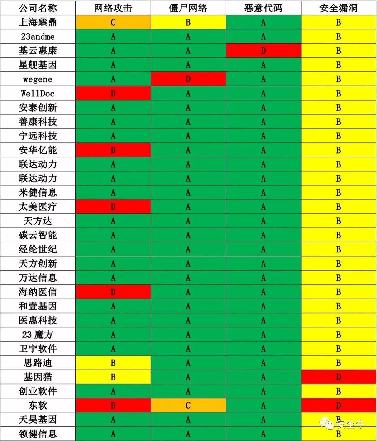 表注:安全值>=900评级为A;安全值>=700评级为B;安全值>=500评级为C;其他评级为D。