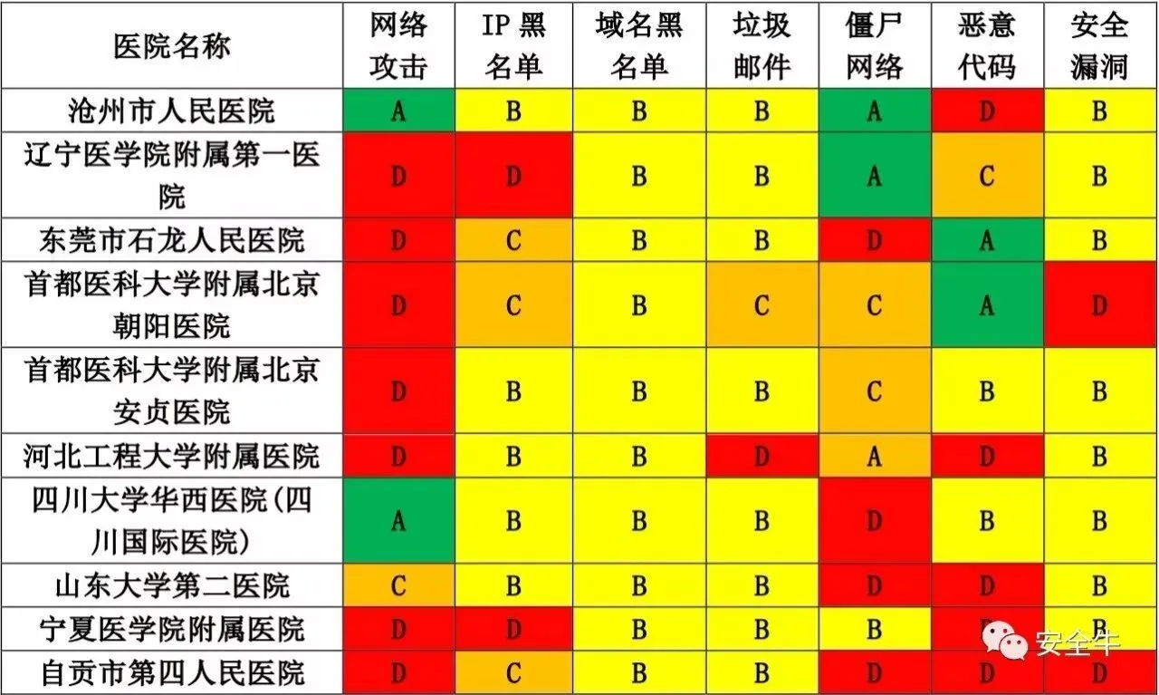 √ 即使评分较高的前十家三甲医院对漏洞、黑名单、垃圾邮件的关注度也很低