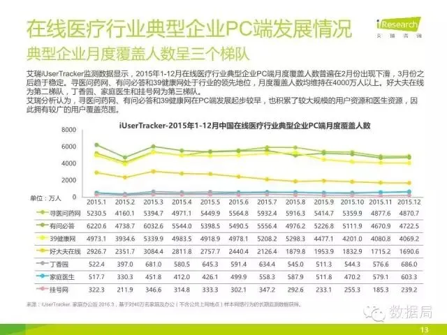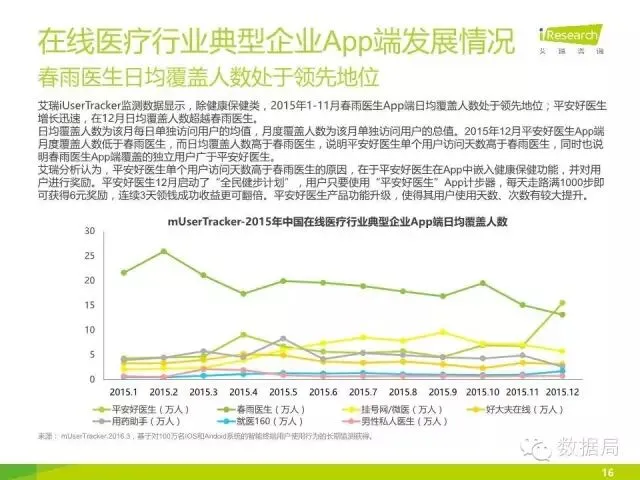 《2016年中国在线医疗行业数据监测报告》为艾瑞行业报告,该报告主要分析了在线医疗行业市场动态以及行业主要参与者的用户流量数据,希望此份报告能够为市场各方对在线医疗行业进行深入分析提供参考。