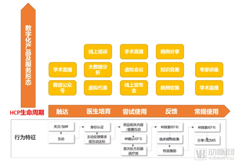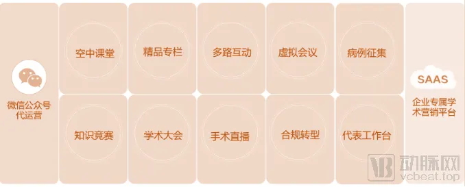 (1)触达:药企通过微信公众号、学术直播、精品专栏等方式触达到目标医生群体,并做一些简单的互动。